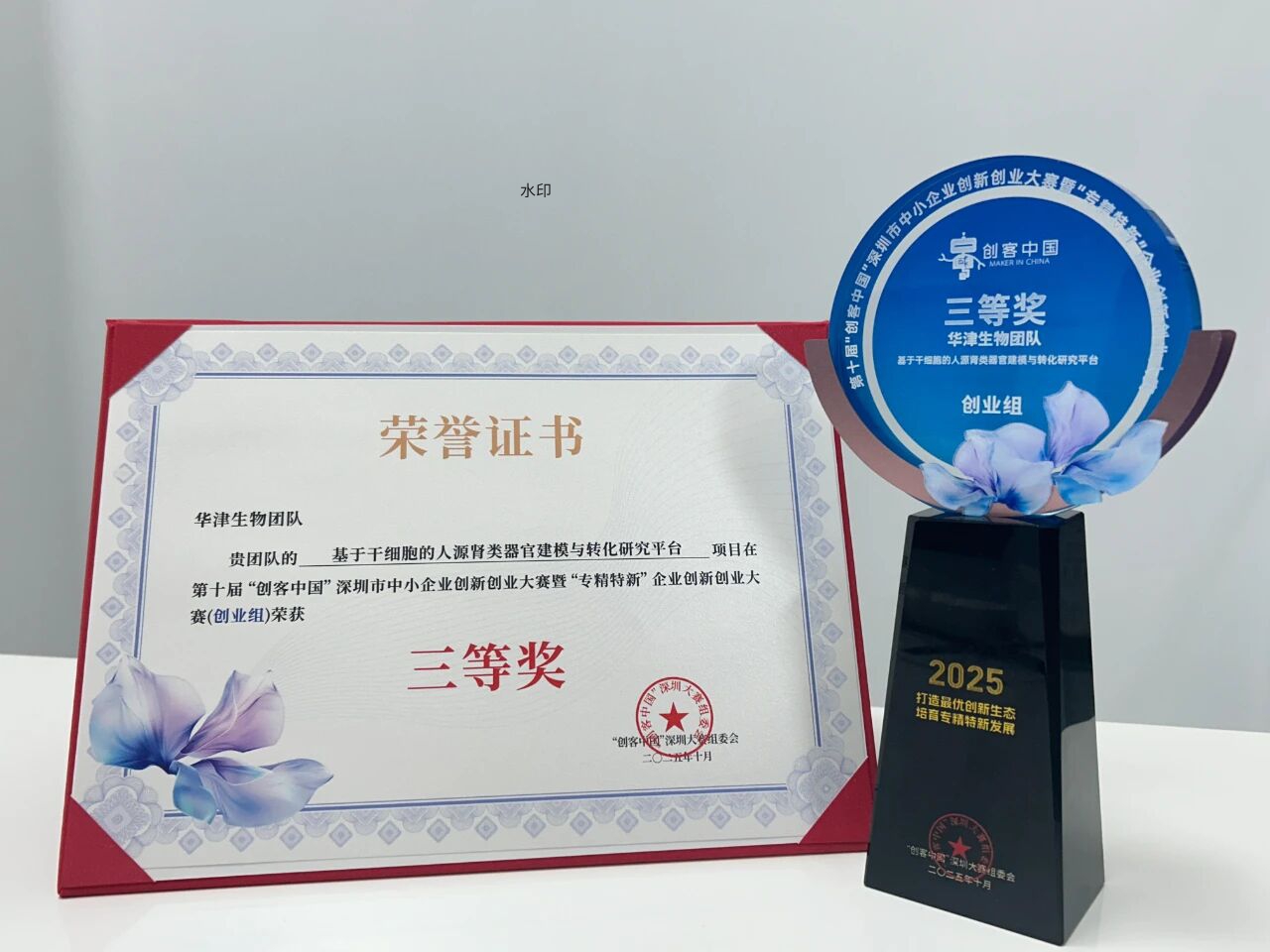 子公司华津生物凭借“基于干细胞的人源肾类器官建模与转化研究平台”项目荣获大赛三等奖。
