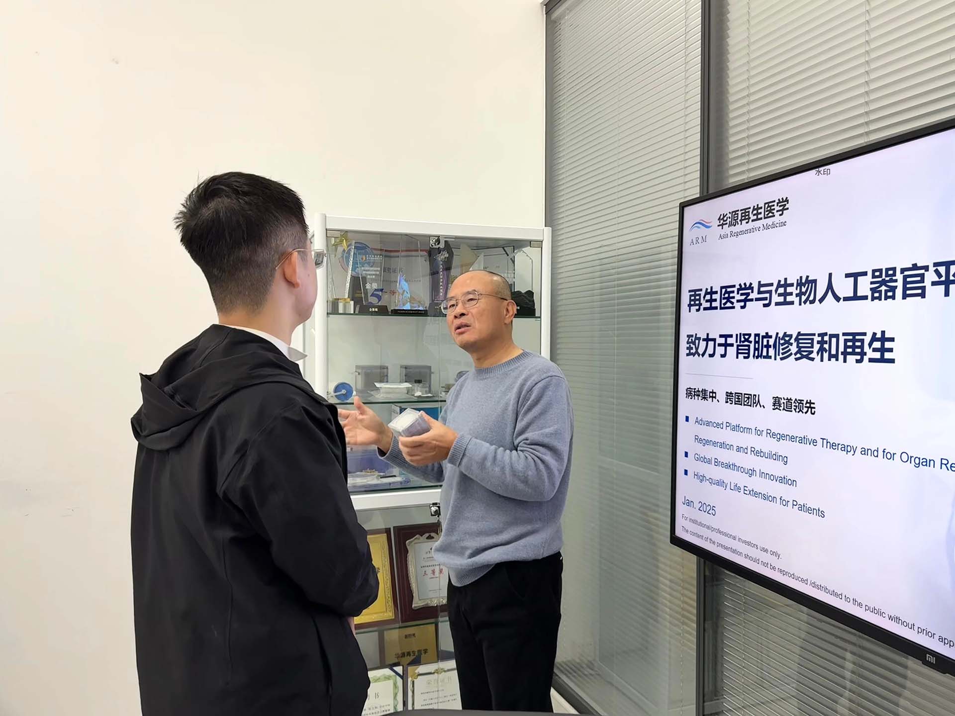 在专访过程中,记者向郑立新先生提问了华源目前的发展状况,以及未来三年哪些产品有望率先落地。郑立新先生重点介绍了华源再生医学的核心技术进展。公司以干细胞及外泌体技术为基石,在人工肾脏研发领域已跻身全球前列,并组建了规模逾百人的肾脏再生研究团队。技术布局覆盖基因疗法、细胞疗法、器械开发与药物研发五大协同模块,构建了全球少有的肾脏疾病一体化再生医学解决方案。
