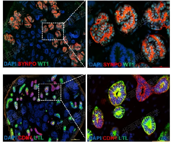 本公司研发的类肾器官分化试剂盒,可高效将人类多能干细胞(hPSCs)诱导分化为类肾器官。其具有足细胞、肾小管等典型结构,并表达 SYNPO 、WT1 、CDH1 和 LTL 等关键标志物。该试剂盒适用于相关机制研究、毒理学研究、药物筛选等。
